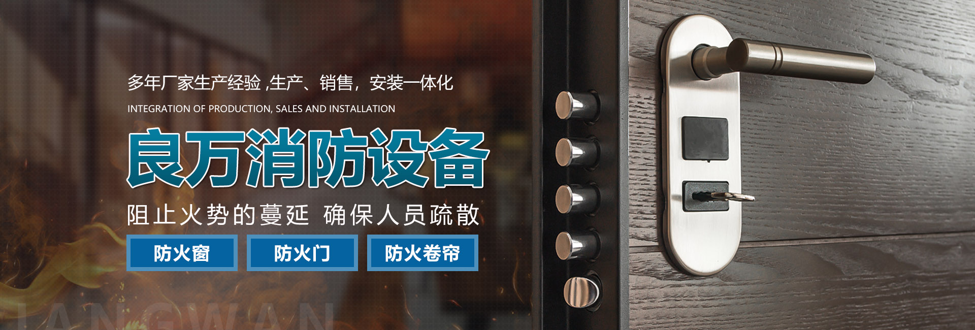 關(guān)于我們合肥良萬消防設(shè)備有限公司位于合肥市包河工業(yè)園,生產(chǎn)銷售安裝:防火門、防火卷簾門、防火窗等消防安全產(chǎn)品。公司具有研發(fā)、設(shè)計、生產(chǎn)、銷售、及安裝服務(wù)的綜合配套能力。合肥良萬消防設(shè)備有限公司技術(shù)力量強(qiáng),設(shè)備齊全,產(chǎn)品不斷創(chuàng)新,以信譽(yù)立業(yè),客戶滿意是我們永無止境的追求。我們在保證產(chǎn)品質(zhì)量的同時,也十分注重售后服務(wù),保證消防安全產(chǎn)品的正常運行。公司始終堅持誠信為本的企業(yè)宗旨,真誠希望與社會各界新老客戶精誠合作,良萬愿與您攜手共創(chuàng)輝煌!